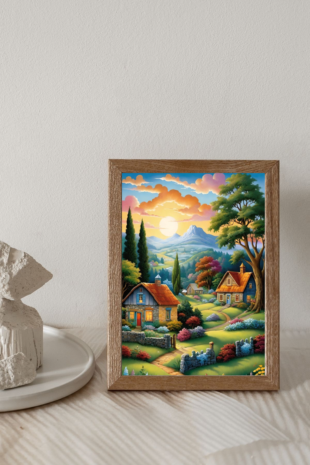 Add a touch of countryside charm to your home with our Rural Landscape Glass Frame. This simple design shows a peaceful rural scene, perfect for creating a calm atmosphere.